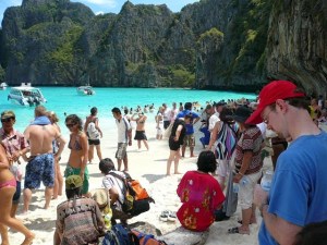 The stuff of the Hotel in Phuket strongly recommended to participate in the tour to Pipi. We were on the wonderful ocean next day. “This is the place that THE BEACH was shot.” Everyone was excited when they saw such a nice place with white sand and blue wave…with some wondering, “Hey..is it possible everyone is on this small beach?? Though such a lot of tourists??”