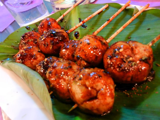This is called YAKITORI at a small restaurant in Bandra, Flower Temple. Eeee, this is chicken but…looks not YAKITORI as YOU can understand…つくねのオイスターソース漬けのようなものでした。