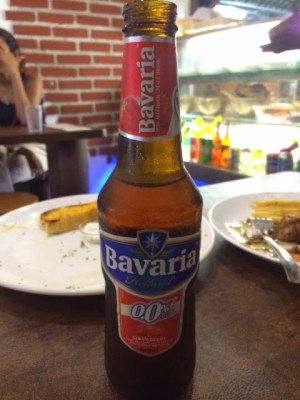 ここでドイツの黒ビールでもあれば最高なのだけれど、このお店にはアルコールは置いていない。お酒を売れるようにアルコール販売のライセンスを取って欲しい物だが、もしかしたらアルコール販売が許されるエリアではないのかもしれない。代わりに飲んだのはこれ。ストロベリーとピーチ味があるらしい。これはこれで美味しかった。