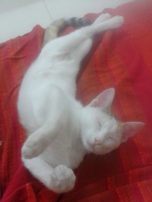 ところでインドのネコは顔が小さくて細身だ。個人的にはちょっと太り気味のネコが好きなので、預かっている間にもうちょっと肥えさせてみようとゴハンを多めにあげている。インドでは太り気味の方が良いとされているし、ネコもインド人みたいに太らせたら、もっと地位があがるはずだ。