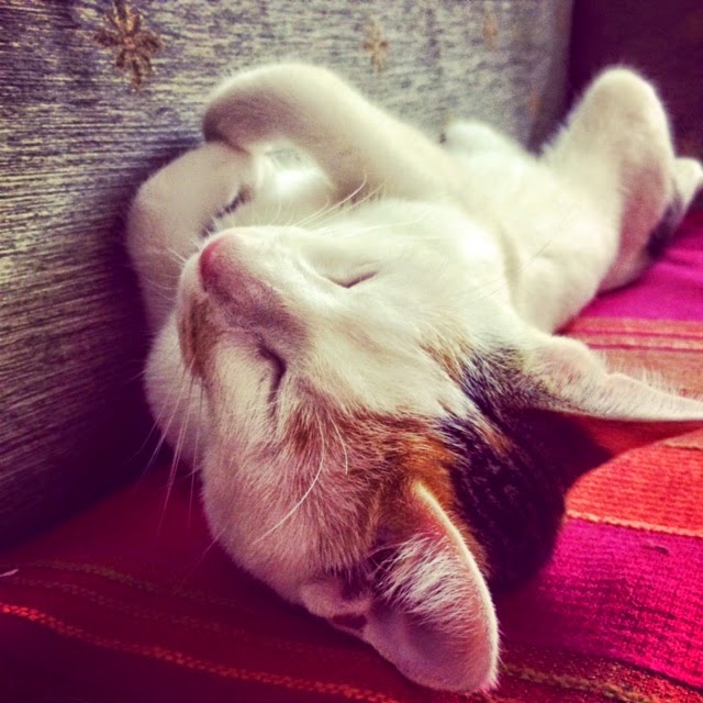 数日前から、日本へ帰国している友人のネコを預かっている。現在、生後6ヶ月くらいのハナさん。特技は「変な寝相」と「取ってこい」。人見知りをしない愛想のいい性格。